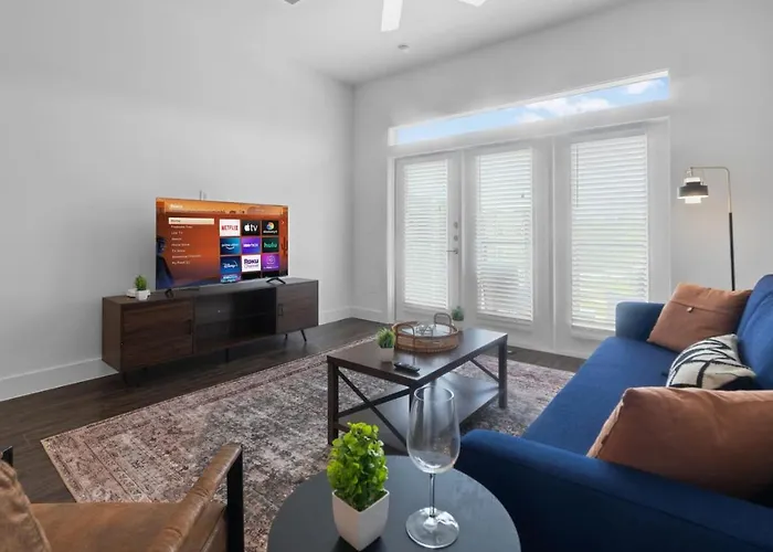 Die Anbindung an das öffentliche Verkehrsnetz ist ausgezeichnet, sodass Besucher problemlos die Stadt erkunden können. Autofahrer profitieren zudem von einem eigenen Parkplatz direkt vor der Luxurious New Unit 1Bd1Ba Pool Golf Sim, was die Anreise bequem und unkompliziert gestaltet. Die Entfernung zu Zilker Zephyr Miniature beträgt lediglich 17 Kilometer, was einen einfachen Zugang zu einem der beliebtesten Ausflugsziele der Region ermöglicht.
